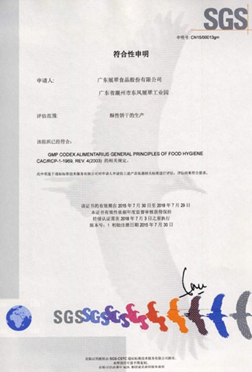 食品安全管理體系認(rèn)證證書