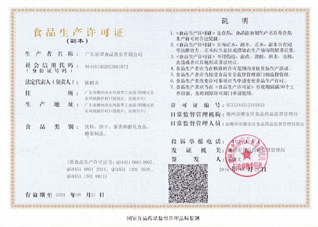全國工業(yè)產(chǎn)品生產(chǎn)許可證(蜜餞)