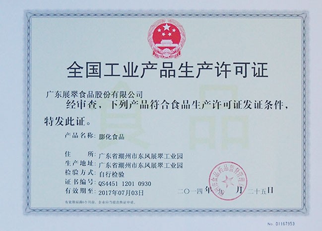 全國工業(yè)產(chǎn)品生產(chǎn)許可證(膨化食品)
